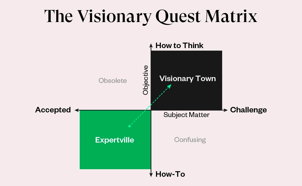You see, expertise is a spectrum that ranges from subject-matter expertise to visionary leadership. What we’re inviting you to do is move higher up the scale by developing visionary ideas.